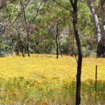The flowers are bright yellow and about 1 inch across. There are many of them on each branch. Bloom time is late spring to early summer. It’s a good idea to deadhead your plants before the berries form to prevent them from dropping thousands of seeds into your garden. If you have animals in the area, the seeds are covered in a sticky substance that adheres to the animals’ coats as they pass by thereby spreading the seeds far afield from the original plants.